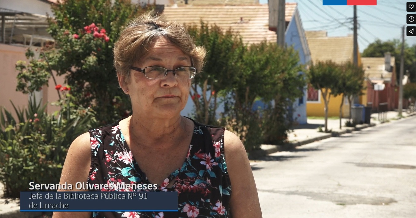 Servanda Olivares Meneses, jefa de la Biblioteca Pública N° 91 de Limache, comparte su experiencia en los encuentros comunitarios realizados en el marco del trabajo desarrollado junto al programa Memorias del Siglo XX, centrado en los recuerdos en torno a la CCU.