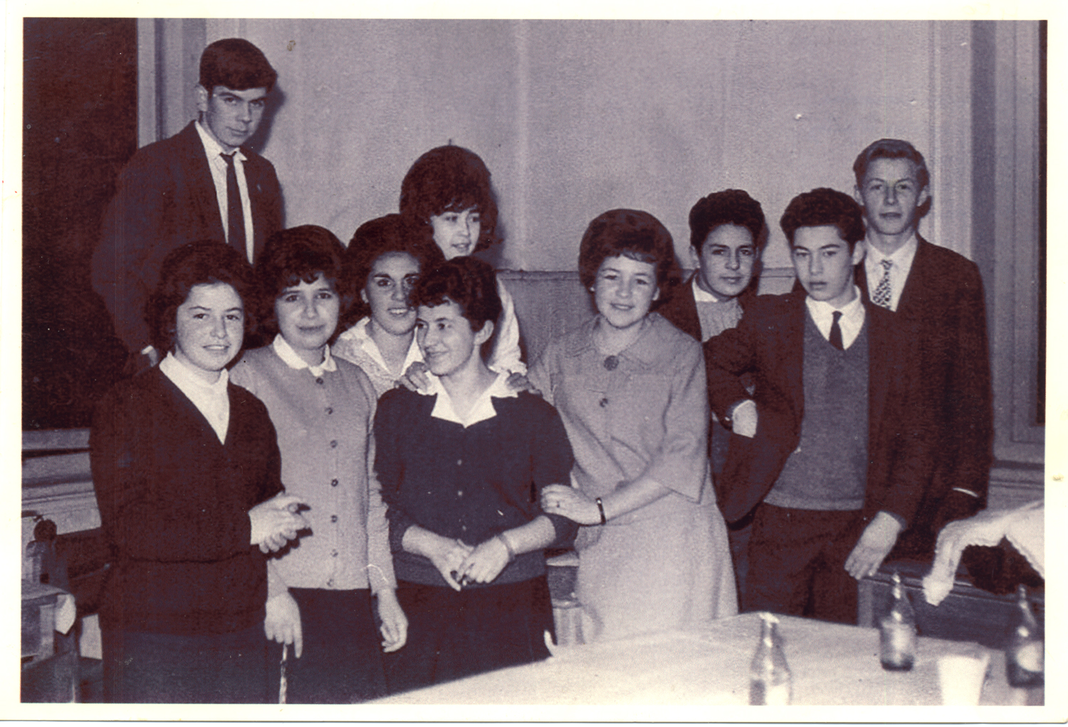 Alumnos del 4° año A de Humanidades del Liceo de Río Bueno, durante su aniversario. Aparecen Waldemar Monsalve, María Angelica Opitz, Lucia Leal, Mónica Fuentes, Irene Garnica, Raquel Vera, Angelica Sanhueza, Ricardo Bobadilla, Adolfo Sommer y Juan Daniel.