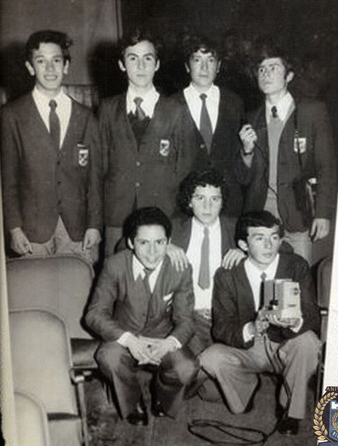 Alumnos de enseñanza media del Liceo Río Bueno. Aparecen Domingo Vidal, Pedro Pablo Cañas, Helmuth Leal y Ariel Delgado.