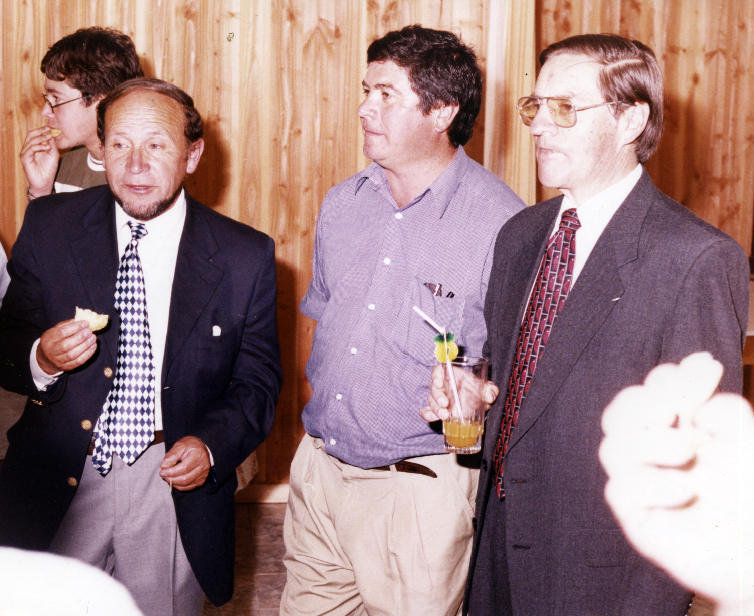 Carlos Obando, Denis Saldaña y Arturo Gómez en el interior del Club de Leones, durante el cóctel de homenaje a la aviadora riobuenina Margot Duhalde.