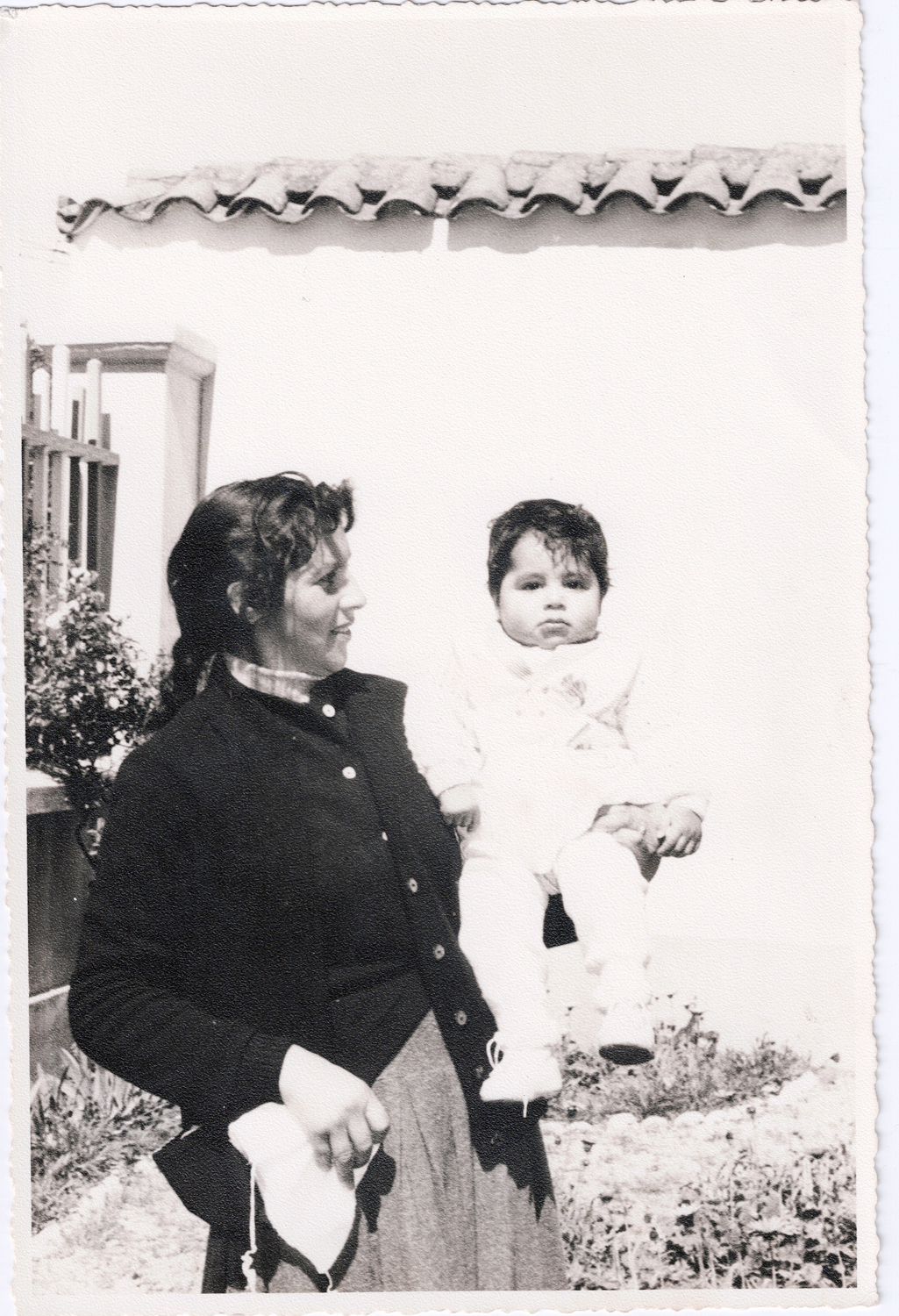 Laura Estela Valenzuela junto a su hijo René Antonio Veas, de aproximadamente 3 años de edad. Fotografía tomada en el ex Colegio El Tabo, actual Casa de la Cultura de El Tabo.