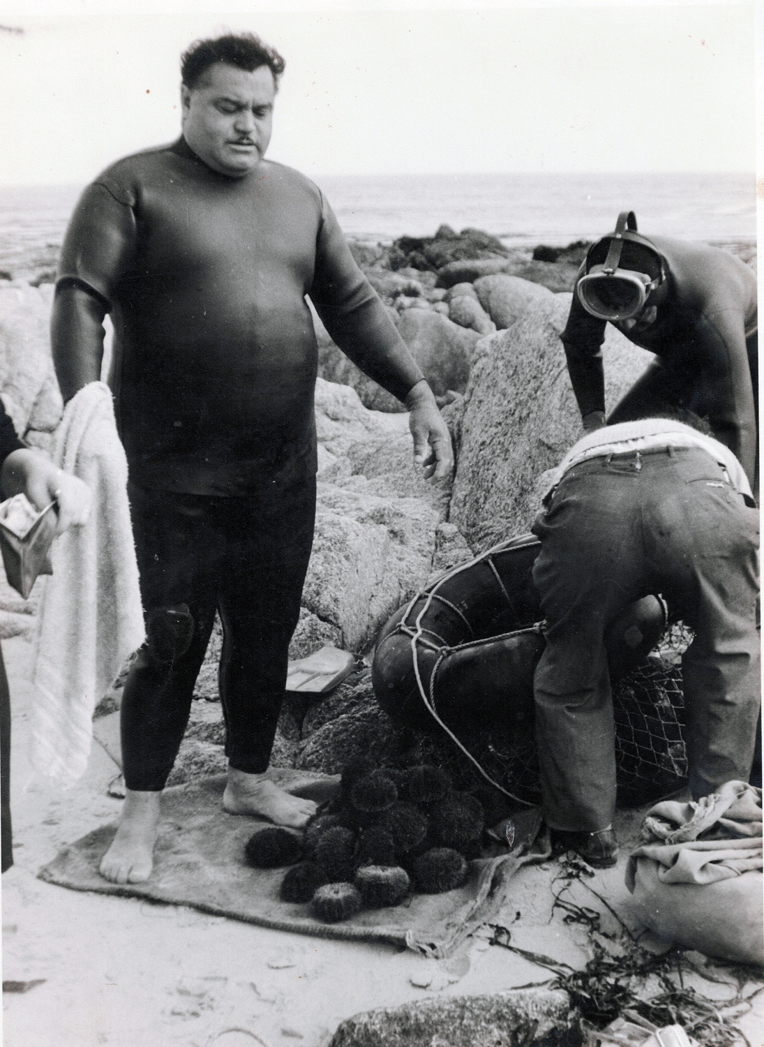 René Veas Fernández saliendo del mar en el sector 7 Reales de El Tabo. René fue salvavidas y participó en el rescate de personas tras el hundimiento del vapor "La Castilla".