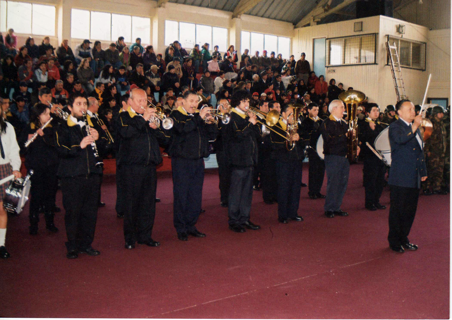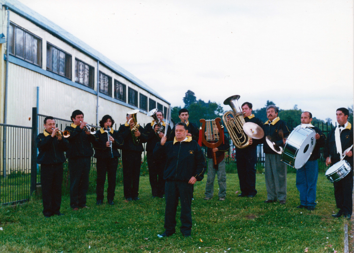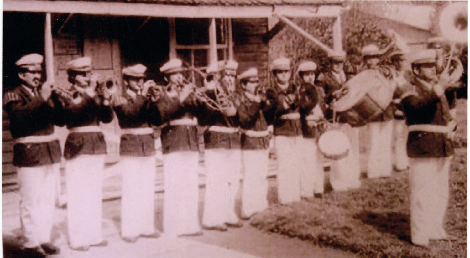 Un 18 de septiembre, antes de salir al desfile. Aparecen Juan Carlos Gil, Aravena, Roberto Yáñez, Gajardo, Felipe Quezada, "Samuelillo" Ocares dirigiendo, Emilio Ocares en el barítono y Wladimir González en los platillos.