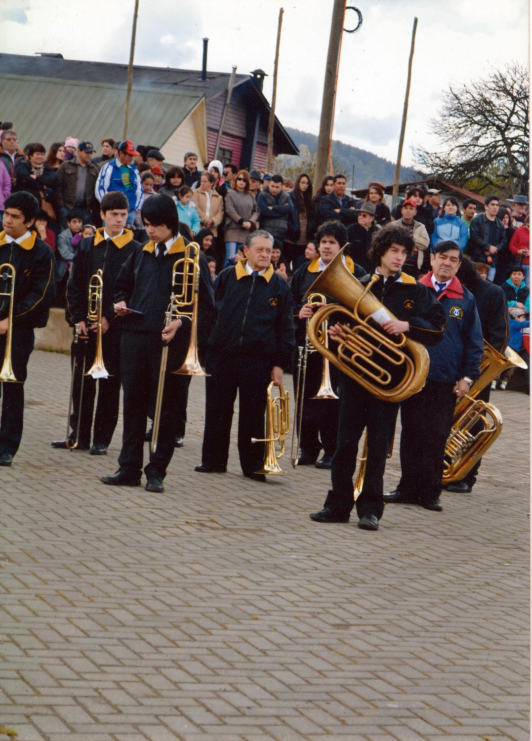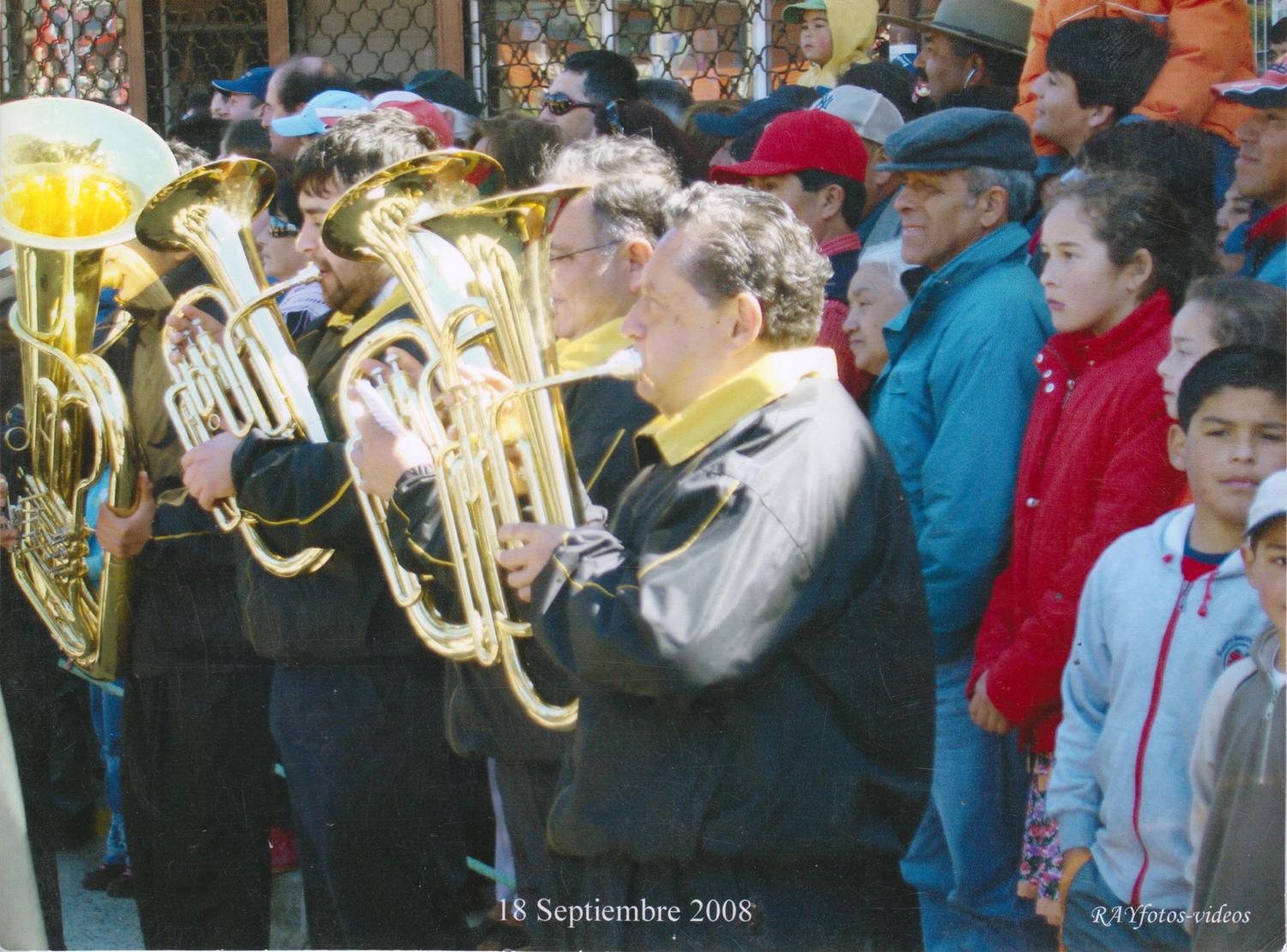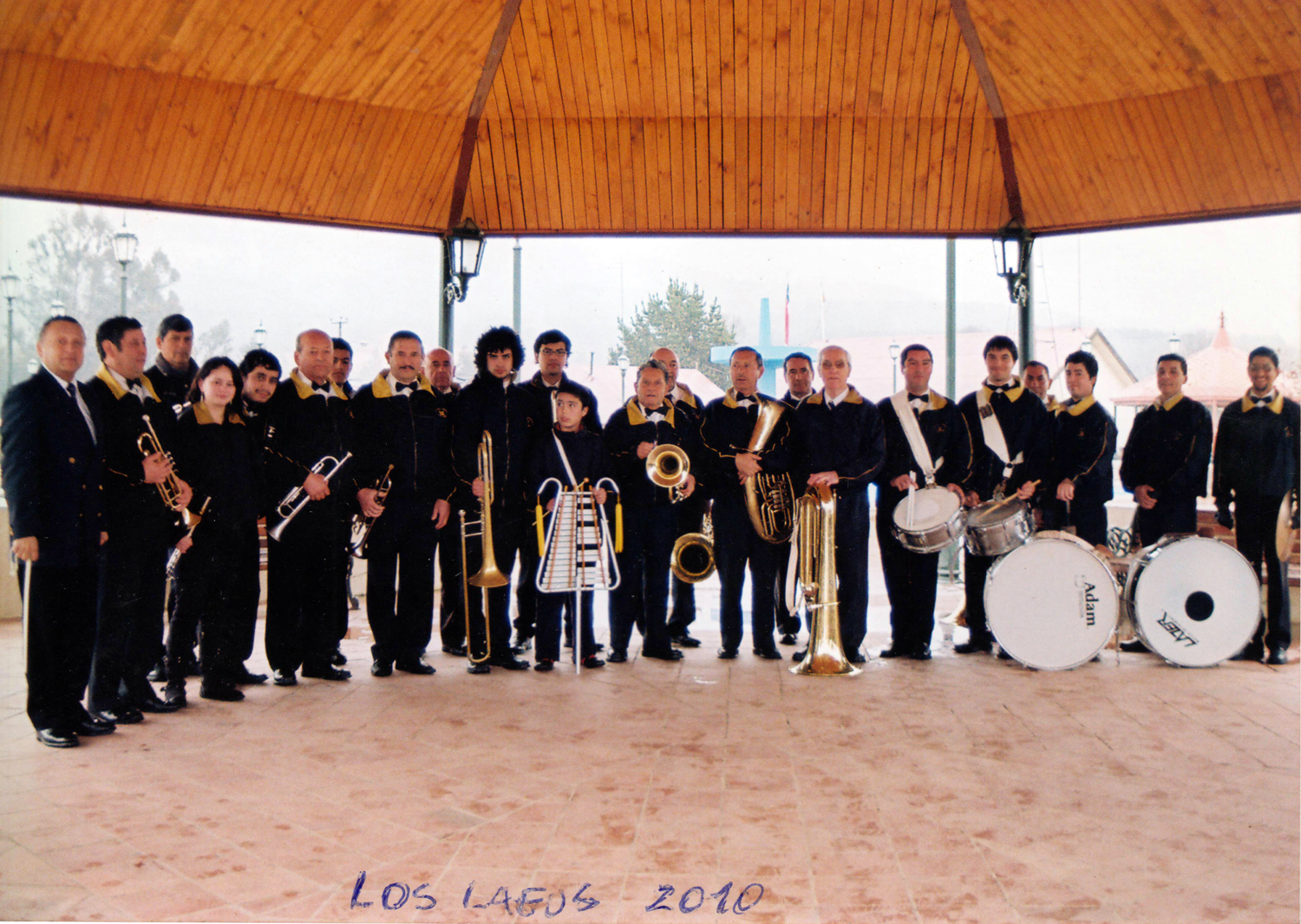 Un 18 de septiembre, antes de salir al desfile. Aparecen Juan Carlos Gil, Aravena, Roberto Yáñez, Gajardo, Felipe Quezada, "Samuelillo" Ocares dirigiendo, Emilio Ocares en el barítono y Wladimir González en los platillos.