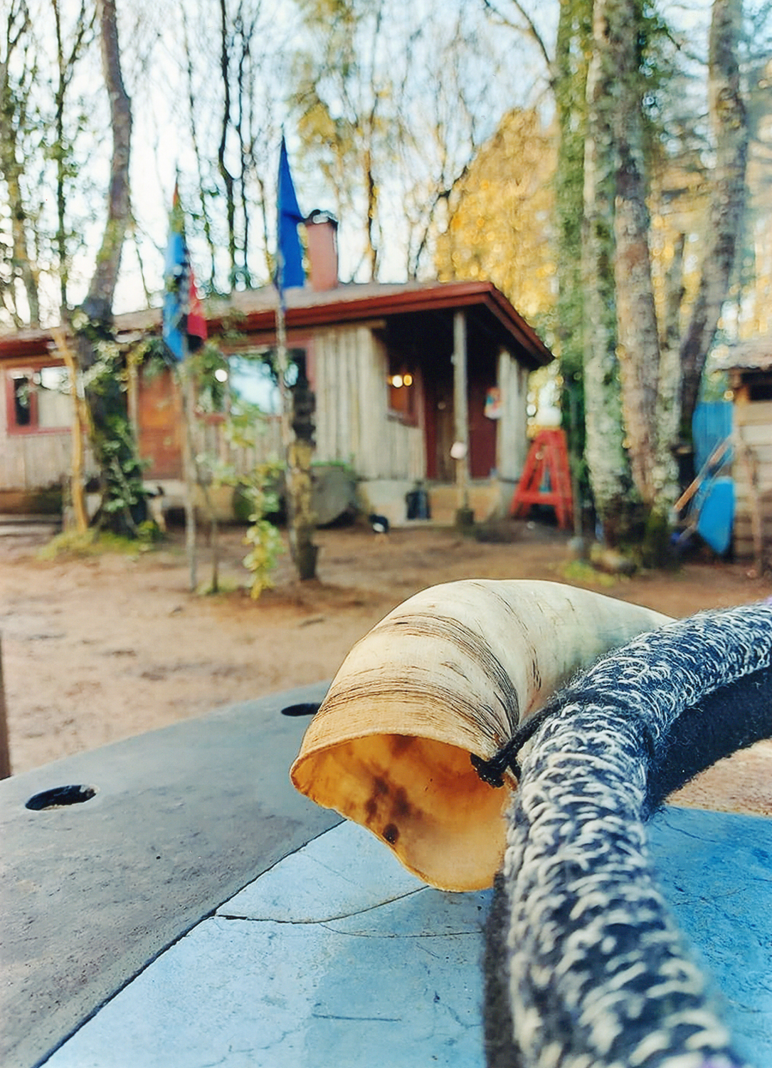 Después de la ceremoniaFotografía tomada después de una ceremonia. Al fondo se ve el rewe, la casa del lonco Hugo y el fogón.