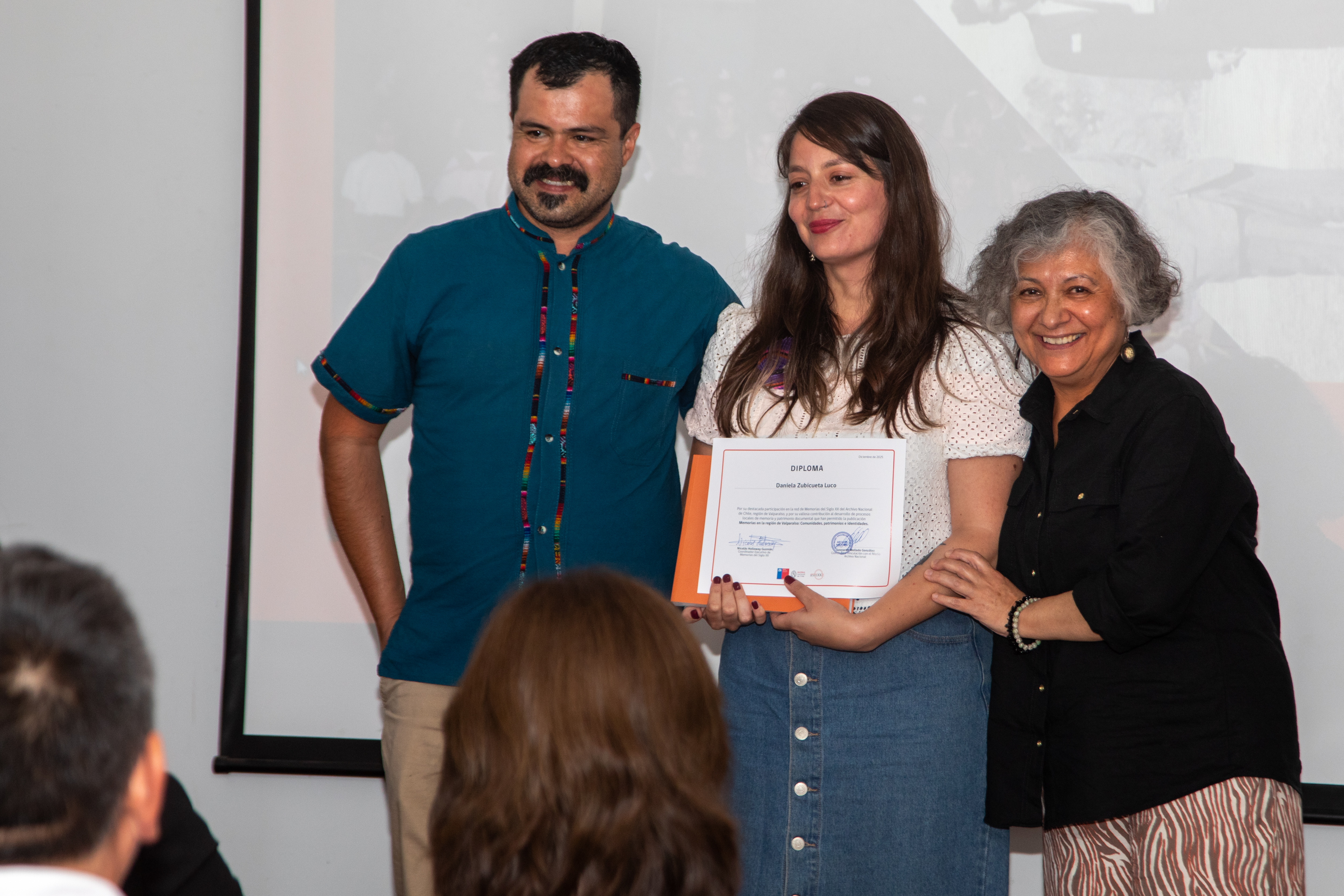 A continuación, fueron distinguidas con un diploma y un ejemplar de la publicación, las encargadas de bibliotecas que fueron parte de los procesos de memoria, hoy día retiradas, así como las actuales encargadas y encargados. Igualmente, fueron reconocidas las coordinadoras y profesionales de la Coordinación de BBPP y del Archivo Regional. Del mismo modo, fueron distinguidas algunas vecinas y vecinos de Llay Llay y Catemu que han compartido fotografías y que son parte de la publicación.