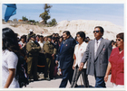 Desfile de la agrupación "Alegría de vivir"por la calle Beltrán Amenábar. Entre los participantes se encuentran Gabriel Cortés, Patricia Calderón y Nora González.