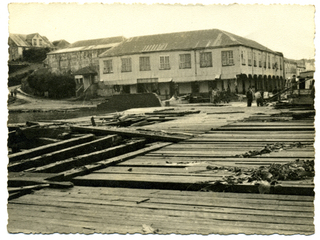 Destrucción en la bahíaRuinas en la calle Prat frente a la bahía de Ancud producto de las altas mareas producidas en los meses posteriores al terremoto.