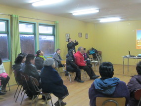 La biblioteca pública de Puerto Octay invitó a habitantes de la población Playa Raquel a participar de un encuentro en la sede de la junta de vecinos. En la actividad, las y los participantes conocieron Memorias del Siglo XX y su archivo digital. El encargado de la biblioteca, compartió fotografías de los inicios de esta población, cuando estaba emplazada en otro sector de la localidad.