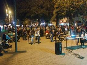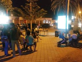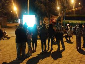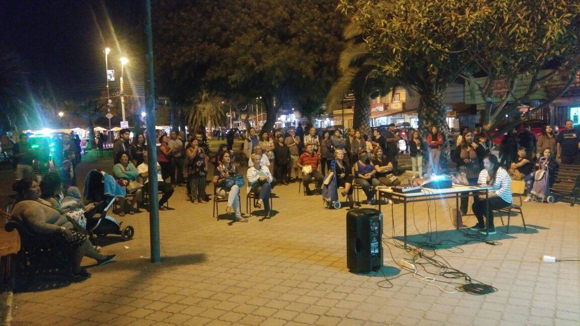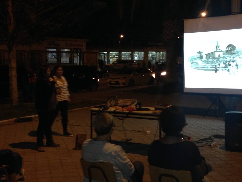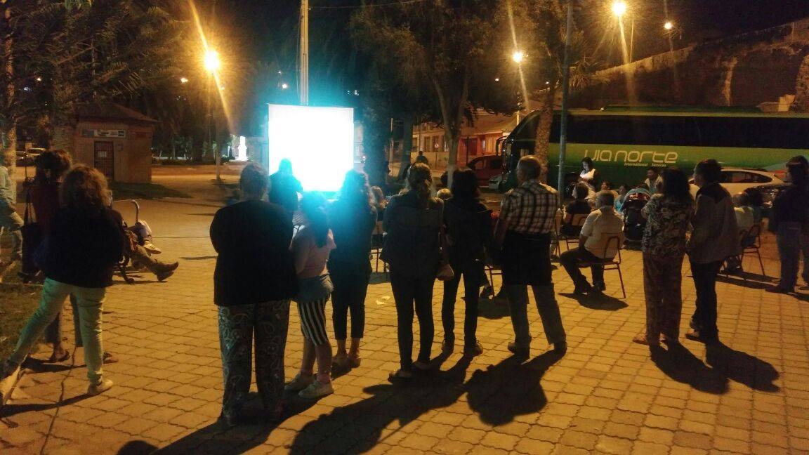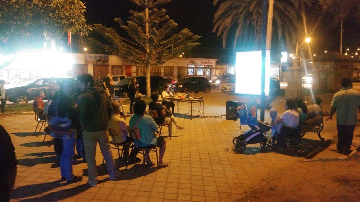 Para ello se montó un cine al aire libre en la plaza principal de la comuna, donde los transeúntes disfrutaron de la proyección al atardecer.