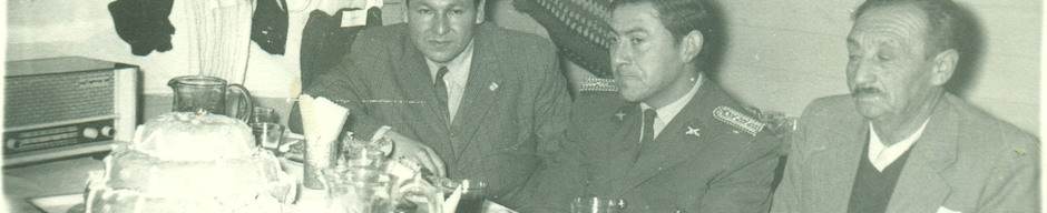 Amigos en el barMario Cortés, Segundo "Don Ajo" Vega y Floro Véliz comparten en el restaurante Costa Azul, ubicado en la calle Fundición Sur. Al fondo, se encuentra la copa obtenida por el club deportivo Independiente de Tongoy, ya que el local era la sede de la agrupación.