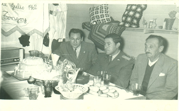 Invitados a la celebración, entre los que se encuentran: el teniente de carabineros Fuenzalida y Nicanor Cortés. Justina Zambra, donante de la imagen, señala que esta agrupación era un lugar de encuentro donde las mujeres se reunían a realizar manualidades, como las que se aprecian en la fotografía.