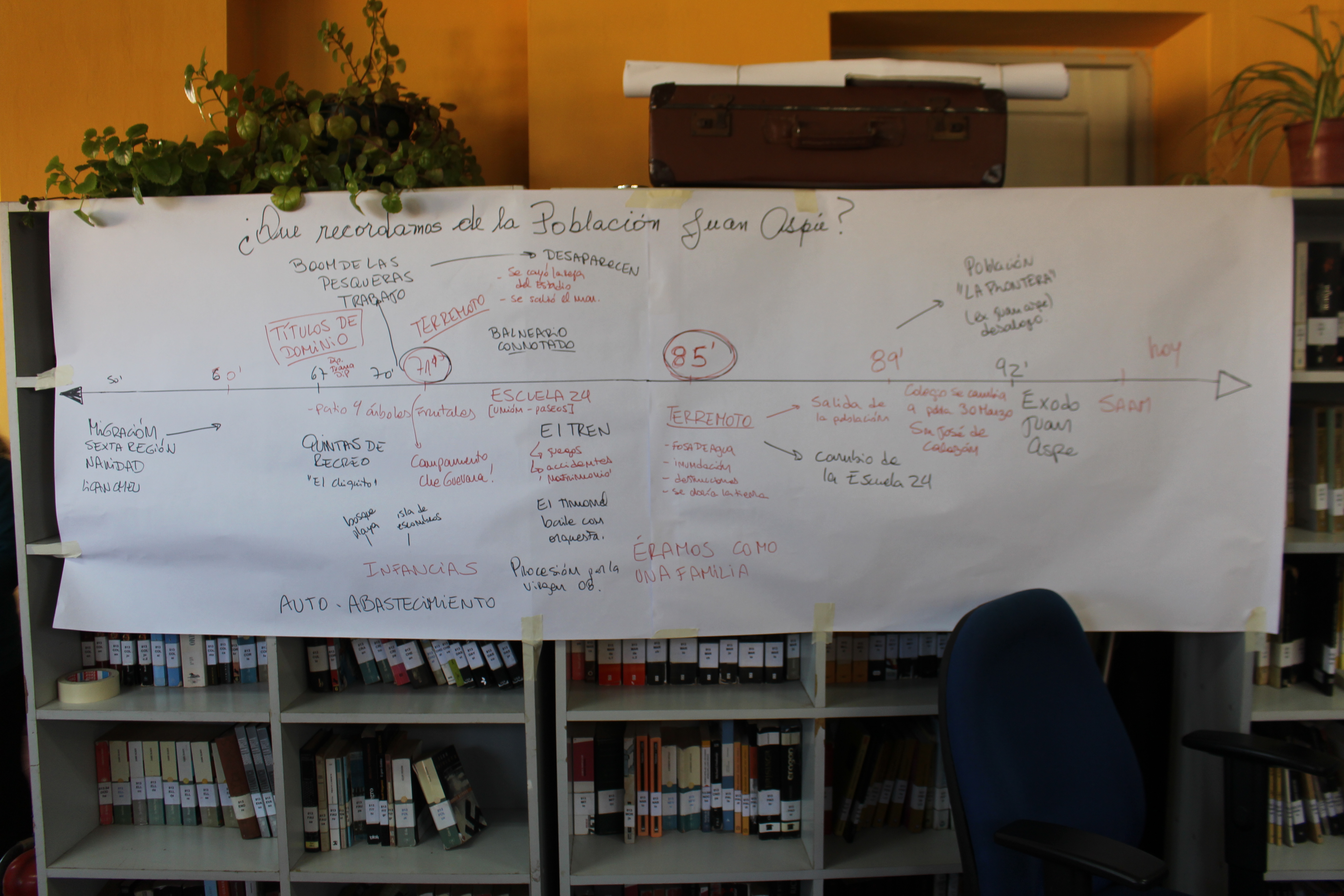 En este marco, quienes asistieron comentaron la entrega de los títulos de dominio en el año 1967; la infancia en la población; el rol comunitario de la escuela; el surgimiento del campamento “Che Guevara” al interior de la población; los terremotos de 1971 y 1985, y sus consecuencias para el barrio; y el paulatino éxodo a la población “La Frontera”, donde hoy aún viven parte importante de los habitantes de la Juan Aspeé.