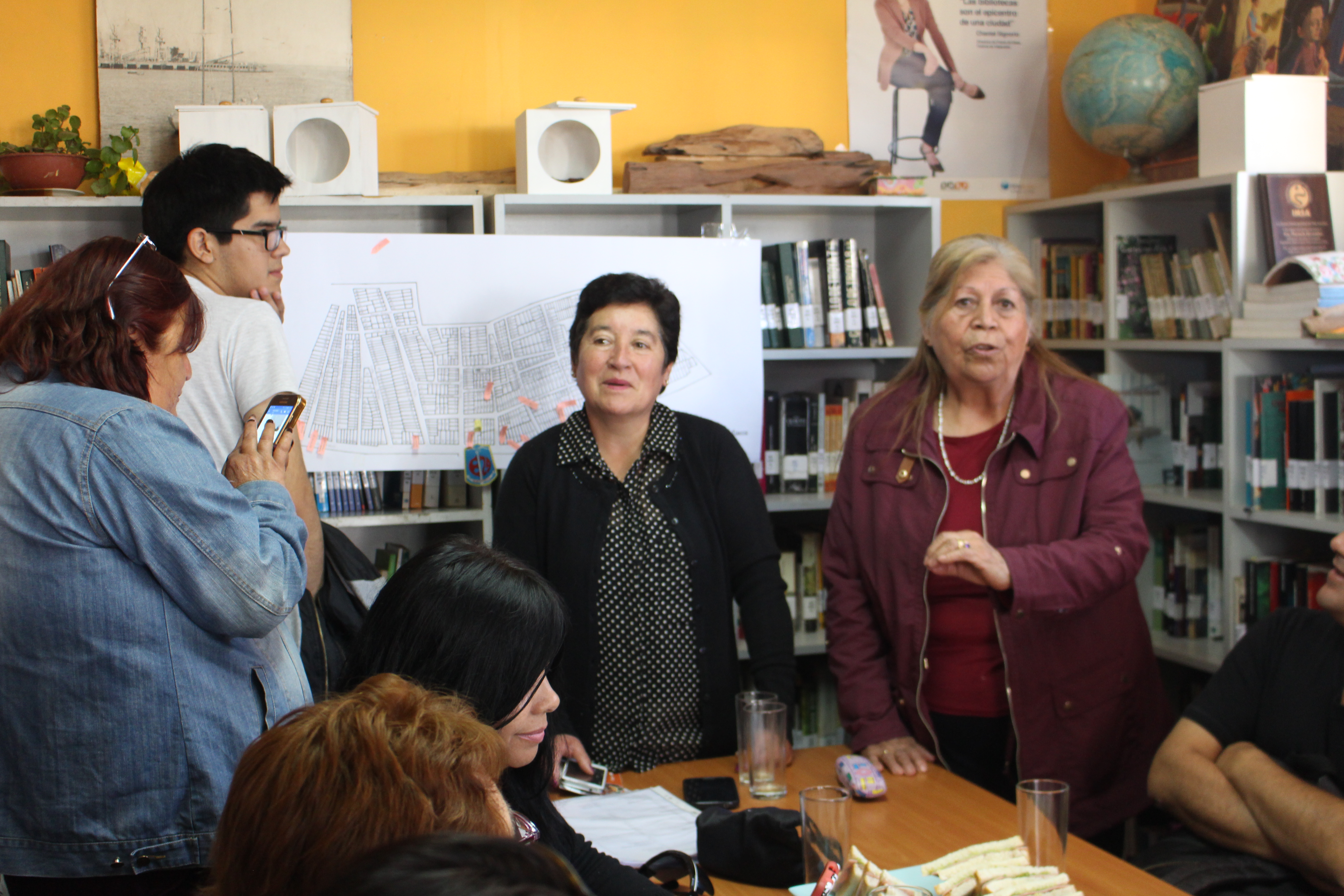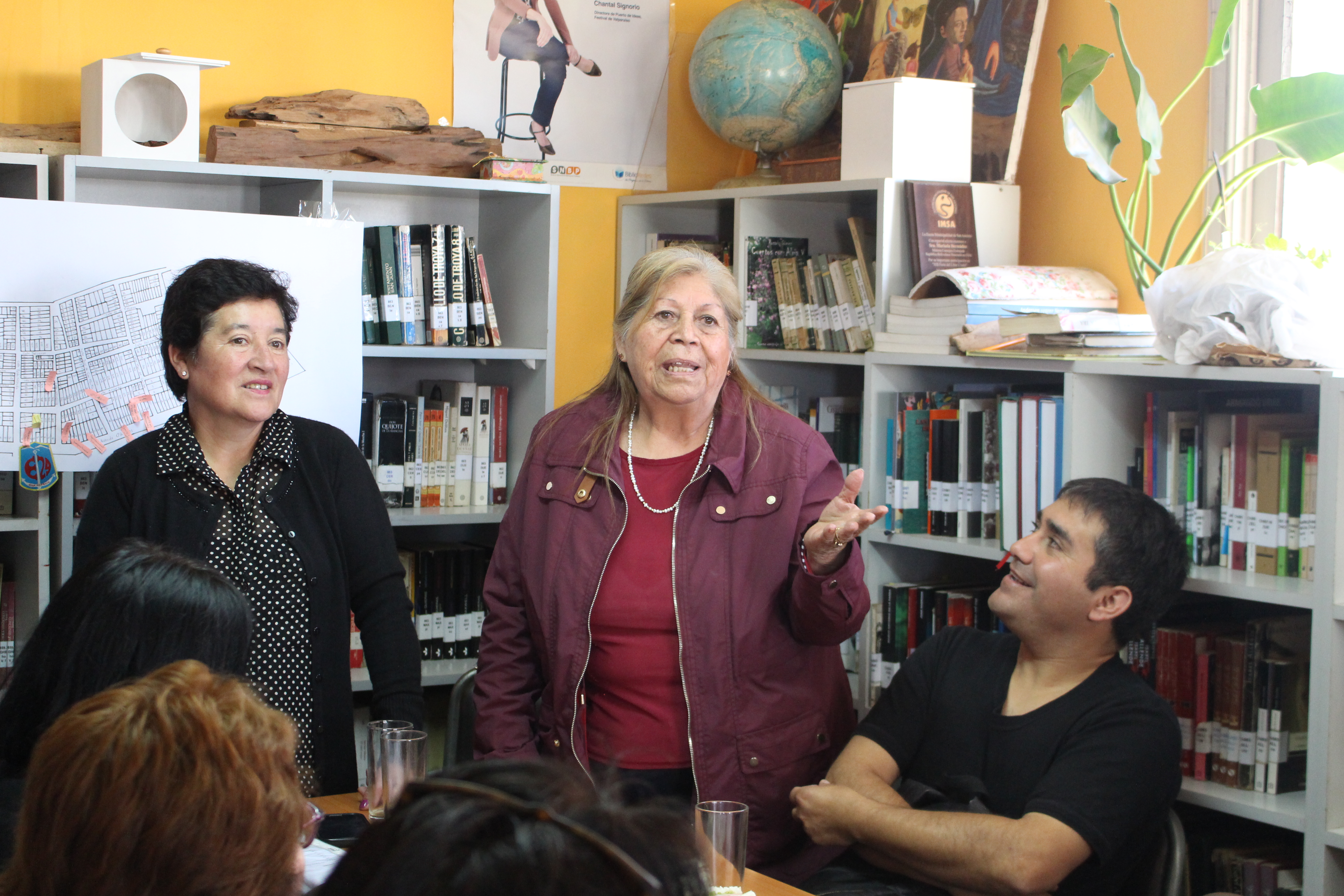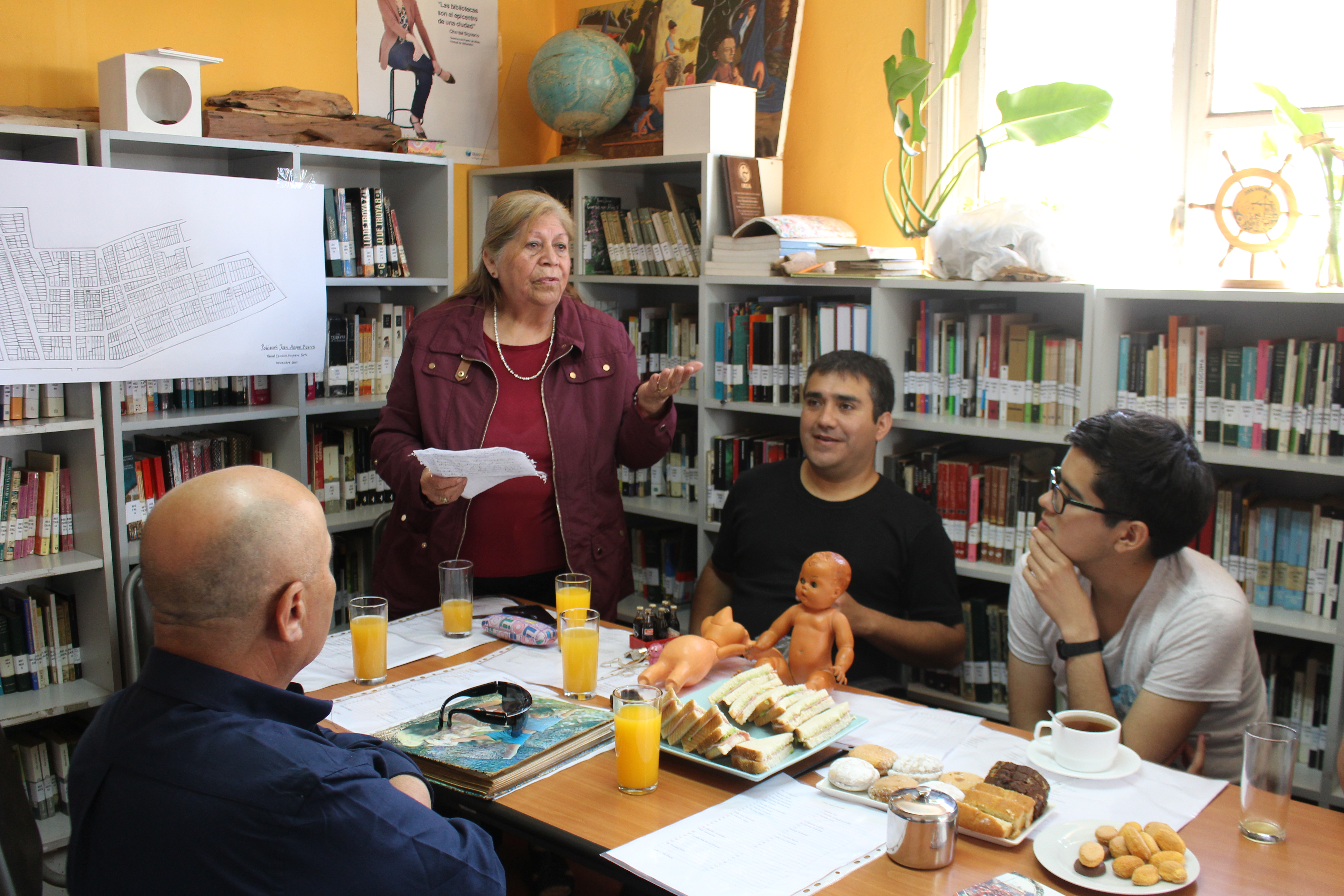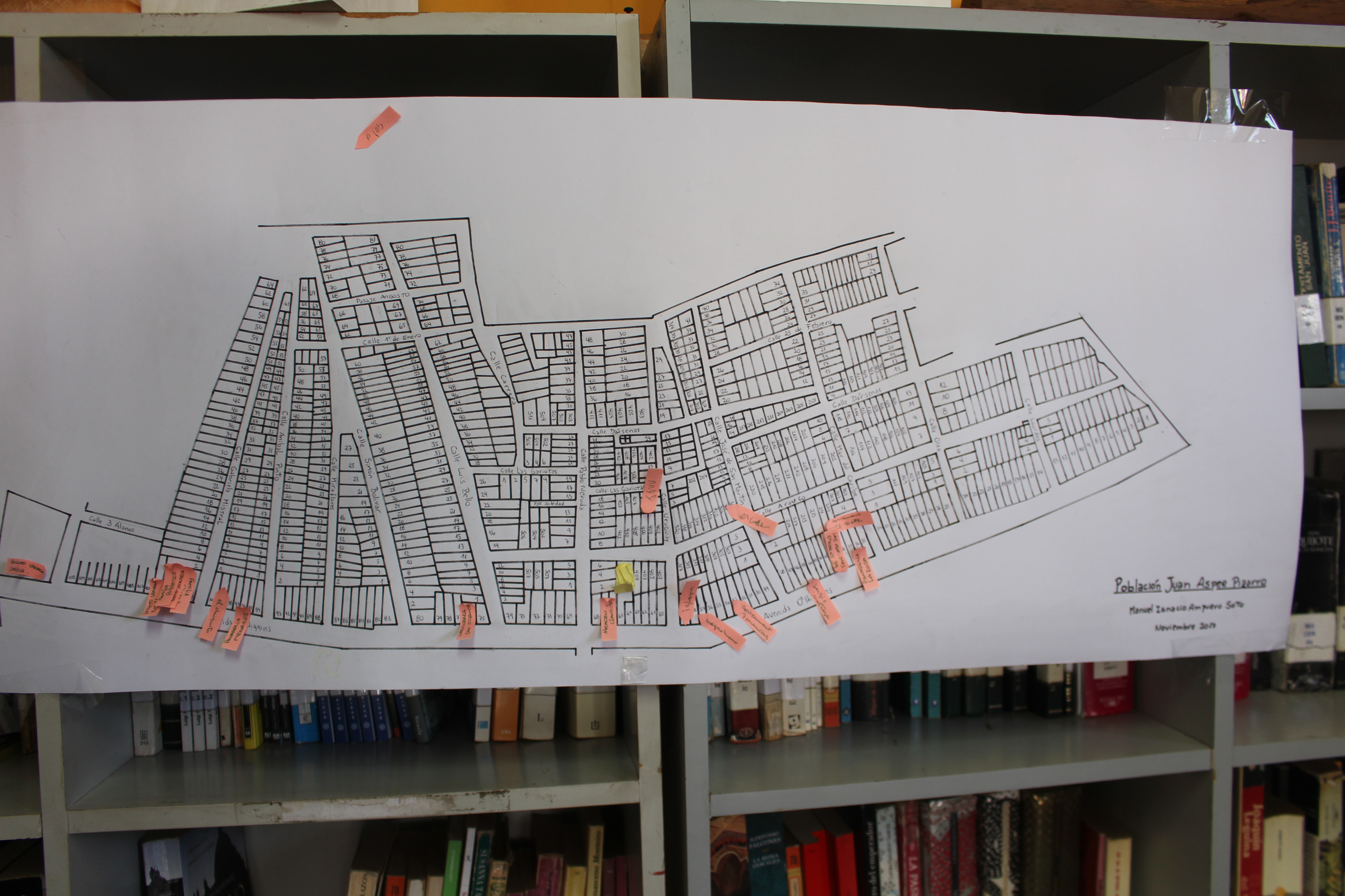 Durante esta tercera reunión, los participantes continuaron el trabajo de memoria respecto de la población Juan Aspeé. Para esta ocasión, uno de los asistentes, elaboró un mapa de la población que grafica cada una de sus calles y casas. Este material, muy valorado por la concurrencia, ayudó a recordar lugares relevantes: espacios de encuentro, recreación, la iglesia y la escuela, entre otros.