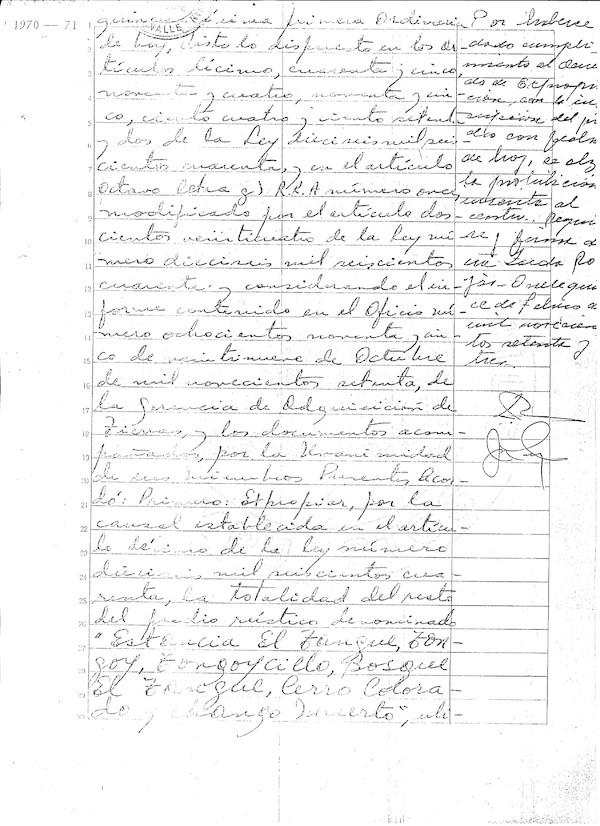Expropiación de terrenos Documento público que indica la expropiación de terrenos que pasan a dominio de la Corporación de la Reforma Agraria.