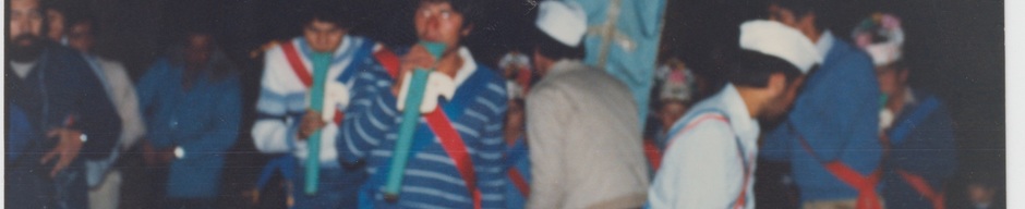 Veneración de la Cruz de Mayo en la capilla San MiguelDanza agachada, baile que se realiza al interior de la capilla en honor a la Cruz de Mayo. En el grupo de chinos se encuentran: Roberto Retamales; Miguel Bruna, con flauta; Guillermo Alfaro, tamborero; entre otros.