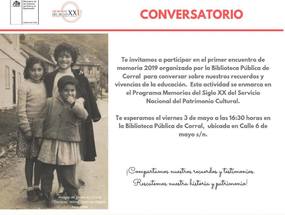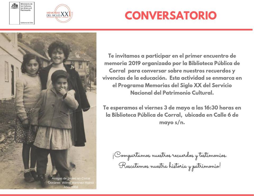 Con gran interés y entusiasmo se desarrolló el primer encuentro comunitario de 2019, en el que vecinos y vecinas abordaron la educación en Corral. En el marco de la conversación se recordaron algunas de las primeras escuelas y su infraestructura; la relación entre estudiantes y docentes; las reformas educacionales y la eliminación de asignaturas como puericultura y economía doméstica.