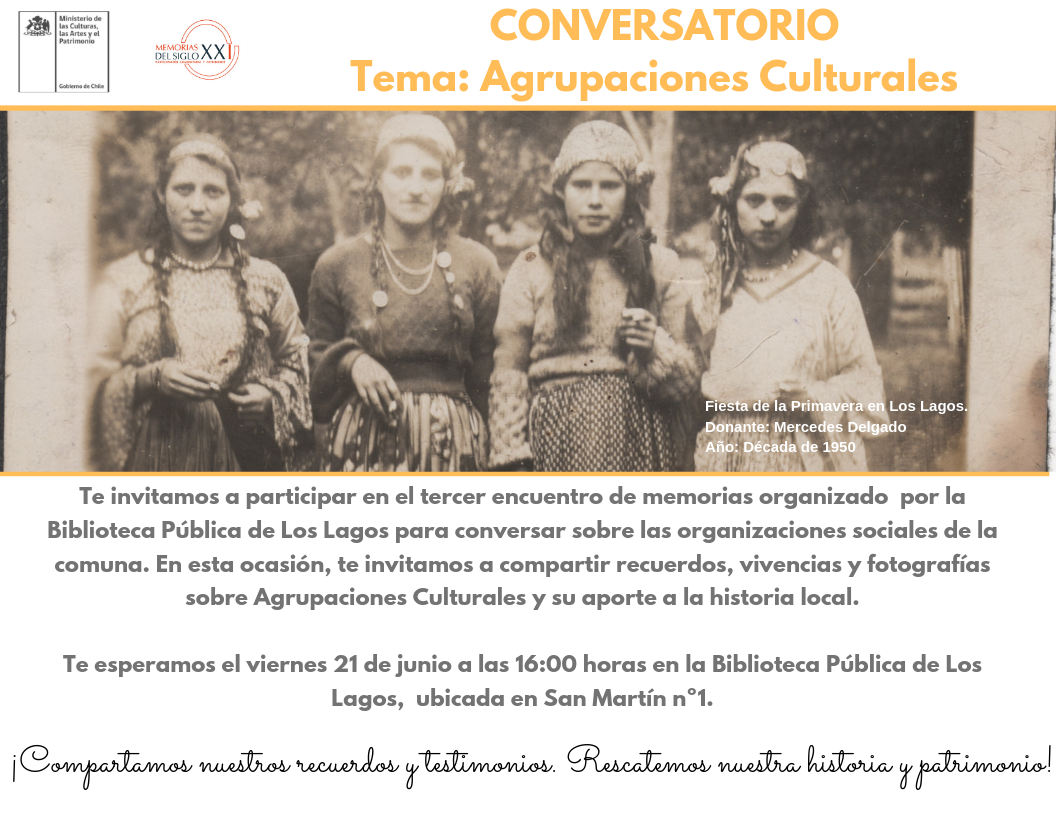 Las y los participantes compartieron recuerdos respecto de la Agrupación de Teatro Mujeres en Escena, la Agrupación Folclórica Magisterio, la Agrupación de Amigos de la Biblioteca de Los Lagos y también la red de comunicadores de la Biblioteca. Asimismo se recordó a la emblemática Orquesta Esmeralda.