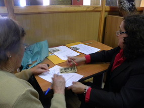 Durante la jornada la encargada de la biblioteca y Cinthya Suárez, en conjunto con las asistentes, conversaron y documentaron las fotografías que llevaron algunas vecinas del sector.
