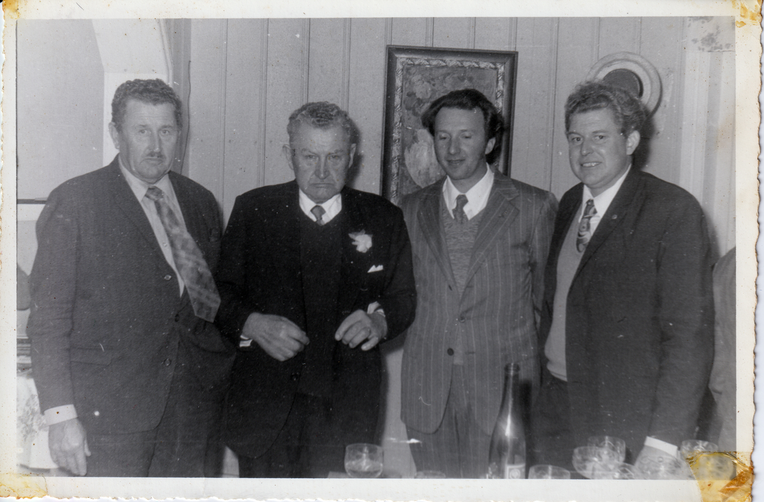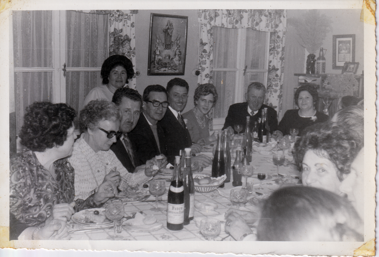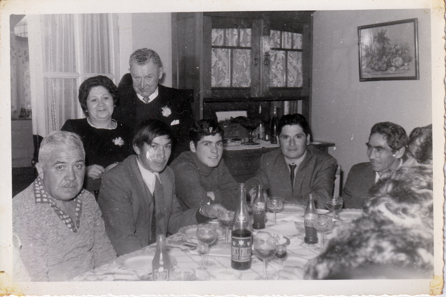 Invitados a la boda de Elsa Toledo Miral y Waldemar Rosa Bittner, realizando un brindis. Aparece Belarmino Mansilla, quien fue dueño de una carnicería en Cañitas.