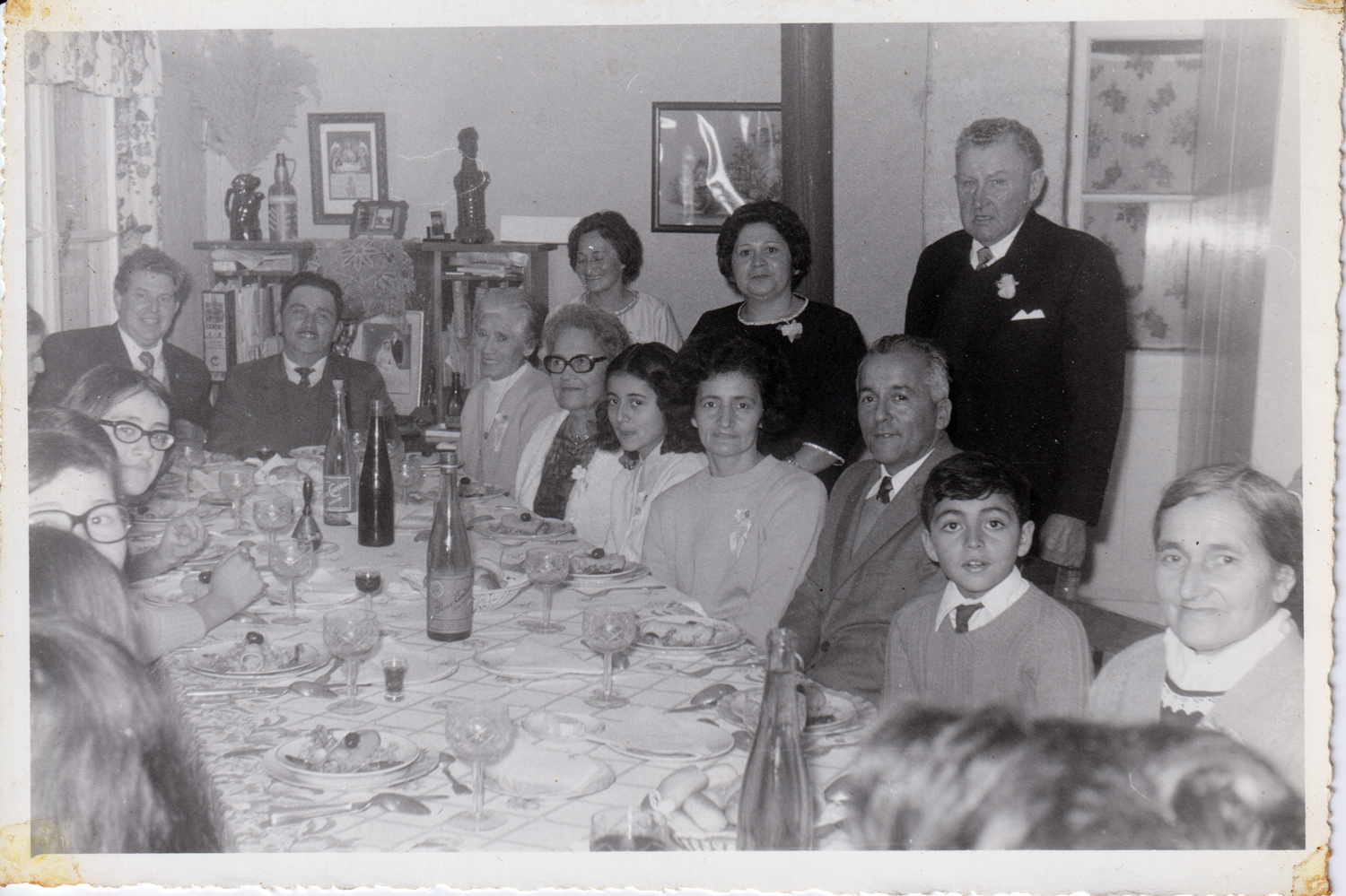 Los novios, Elsa Toledo Miral y Waldemar Rosa Bittner, junto a sus invitados. En la fotografía se aprecia la tradición de servir primero un aperitivo antes de la comida.