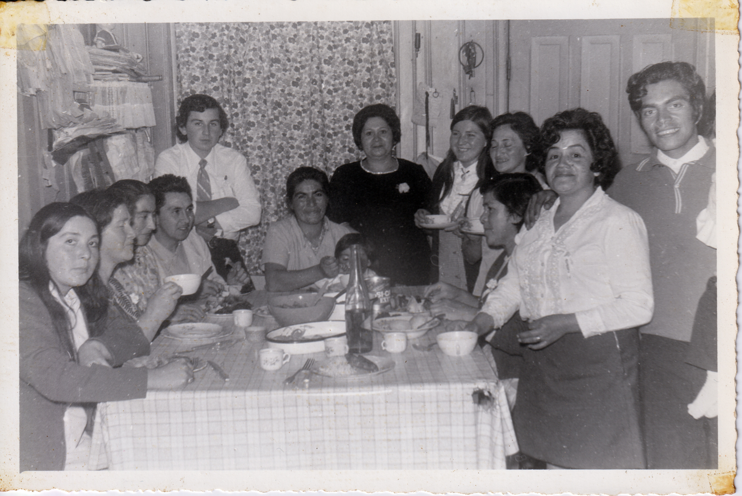 Mateo Carlan Cárdenas, Pamela Cárdenas, Ginet Gallardo, Juana Gallardo, Uberlinda Tellez, Rosa Gallardo, Benjamín Carlan, Claudia Cárdenas, Luis Cárdenas, Marco Vásquez, Salomón Mancilla, Gladys Gallardo, Mario Gallardo, Luis Gallardo, Delma Oyarzun, Jose Gallardo, Miriam Aguilar, Pedro Gallardo, Pedro Valdivia y Marcela en una reunión familiar después del funeral de Patricio Gallardo.