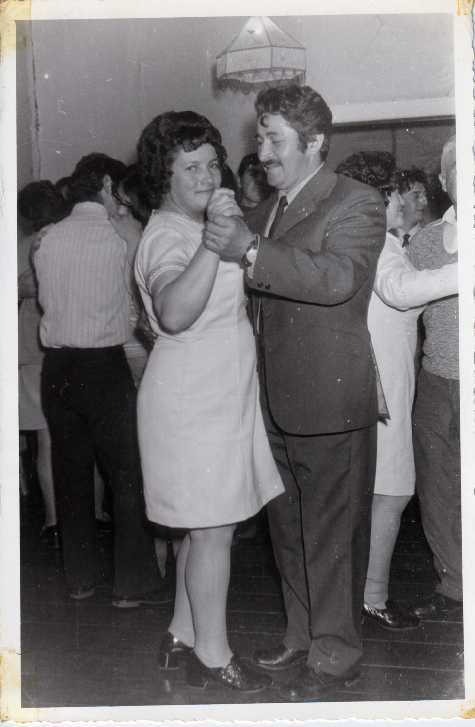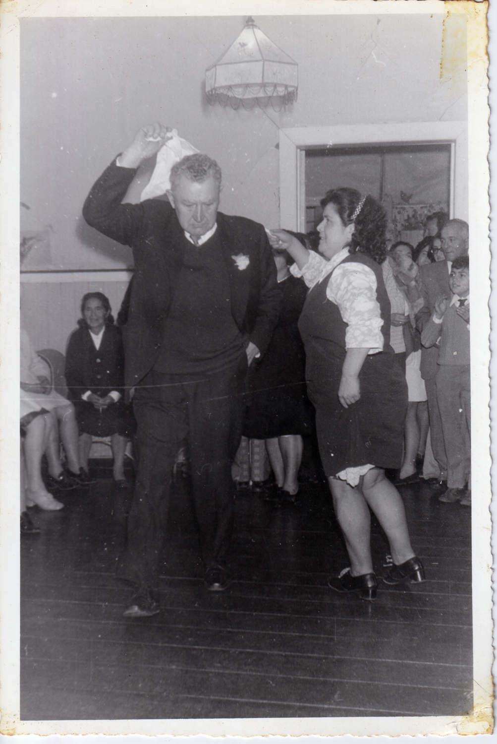 El novio, Waldemar Rosa Bittner, inaugurando el baile con su ahijada, Jovita Mansilla, con una cueca, y realizando el brindis al finalizar.