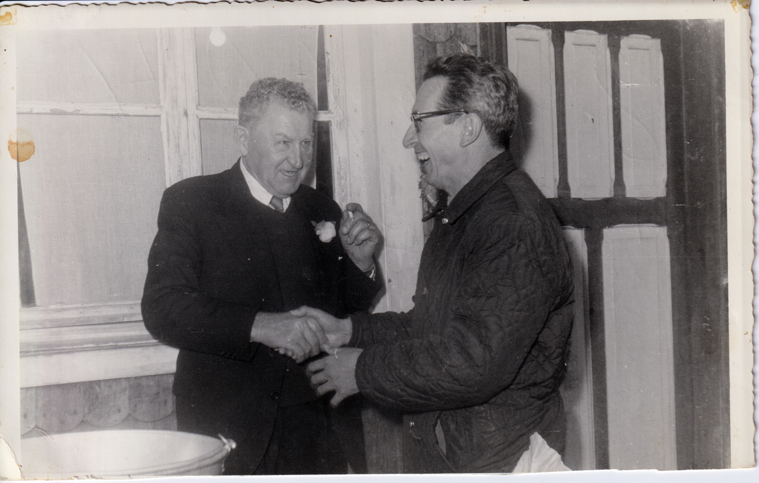 Jorge Cárcamo y Pedro Gallardo, compartiendo en el asado de fin de año de la empresa de camiones en que trabajaba Pedro Gallardo.