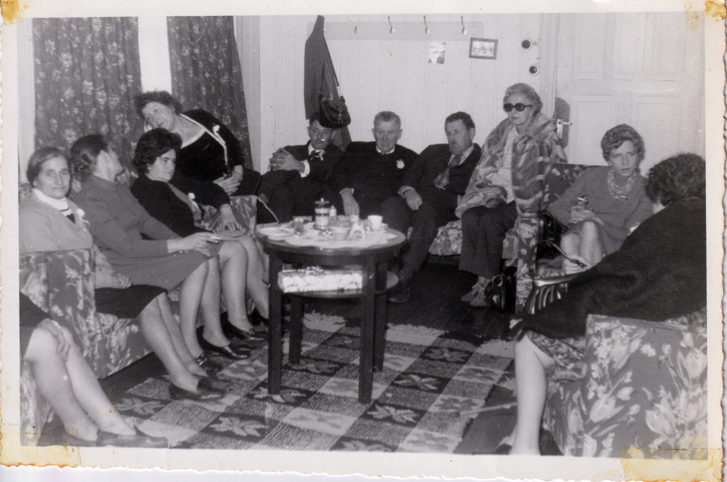 Invitados a la boda de Elsa Toledo Miral y Waldemar Rosa Bittner, cansados del baile, sentados en el living conversando.