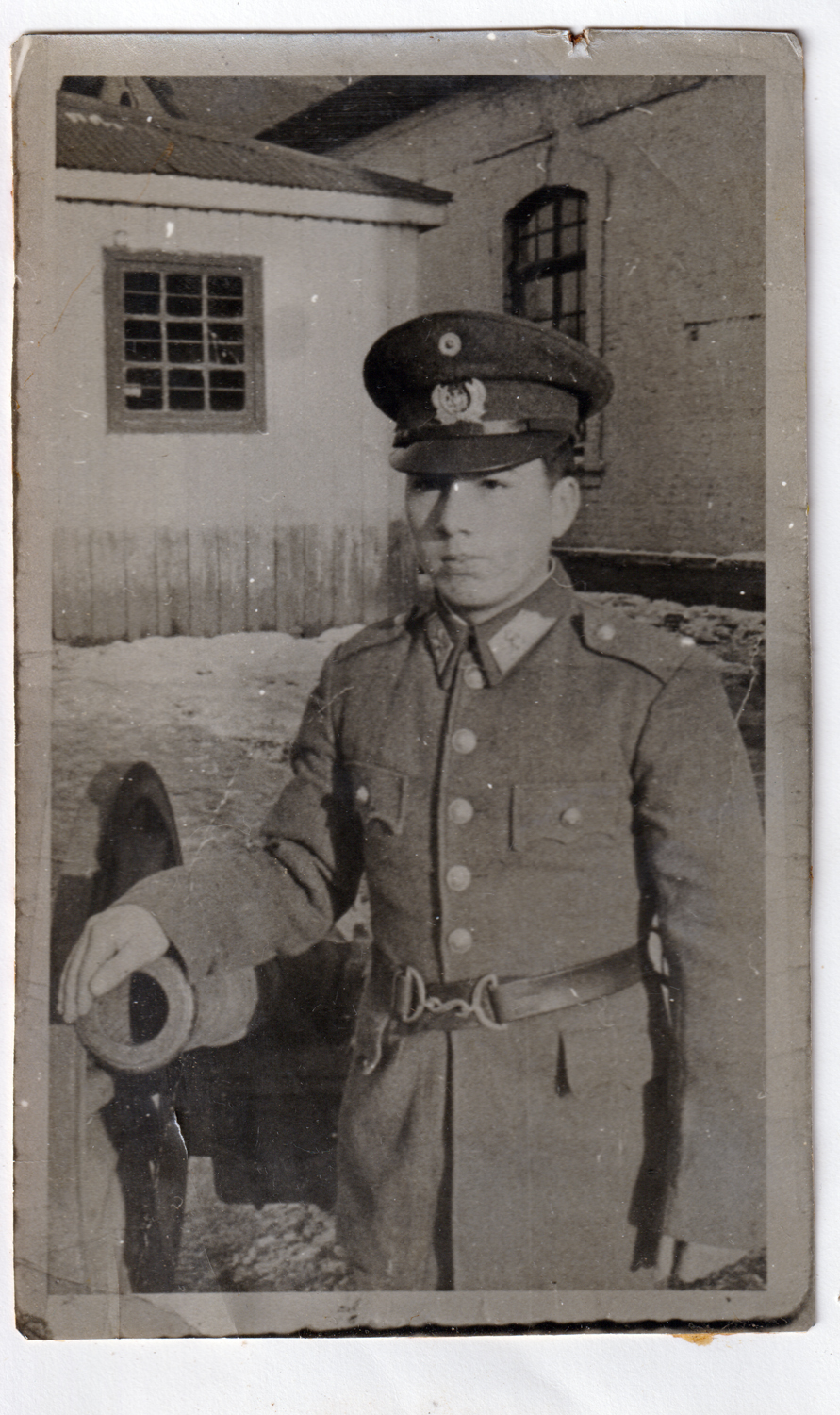 Ramiro Eulogio Inostroza Valderas durante el invierno de 1964, mientras cumplía su servicio militar en Punta Arenas. Era un día domingo y vestía traje de parada del Regimiento Pudeto, Motorizado Reforzado.