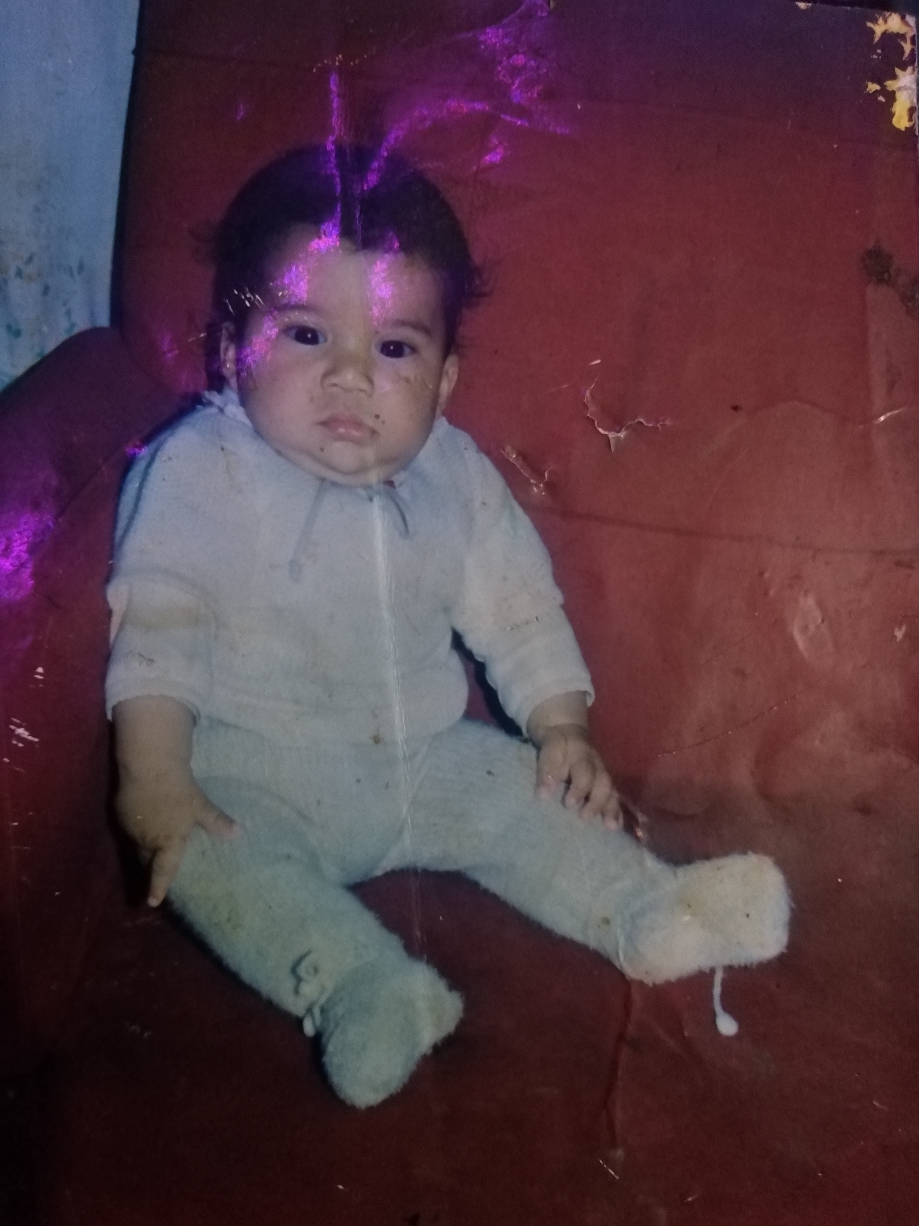 Jeremías Fuenzalida a los dos meses de edad. Fotografía tomada a mediados de diciembre de 1988 en la casa de su abuela Ana Lizama, en La Pintana. En ese período, la calle donde se ubica la vivienda se llamaba Francisco Franco; actualmente lleva el nombre de Violeta Parra.