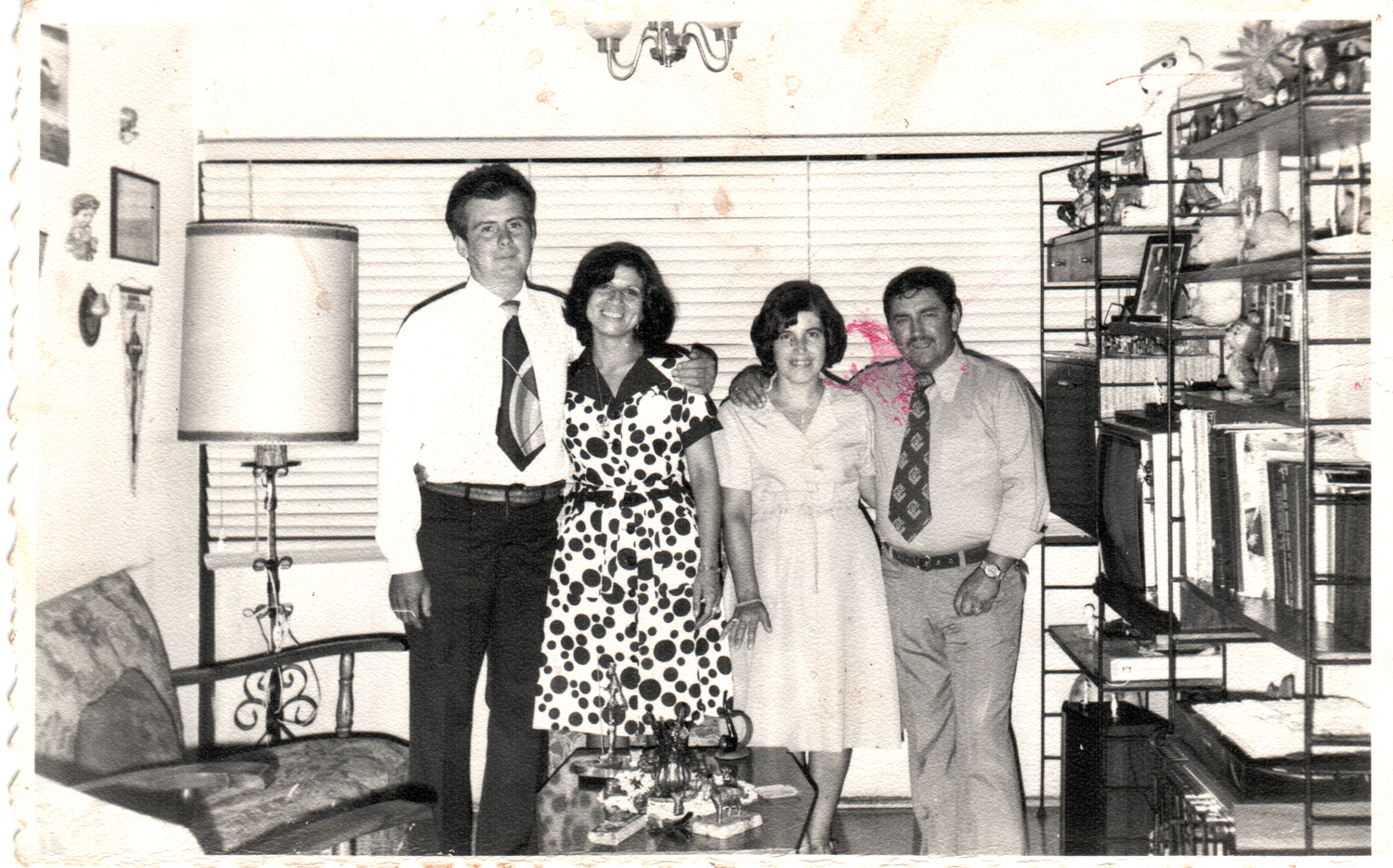 Matrimonio de Juan Ruiz con Irenia Álvarez, quienes aparecen junto a sus padrinos de matrimonio, Sonia Burgo y Luis Muñoz.