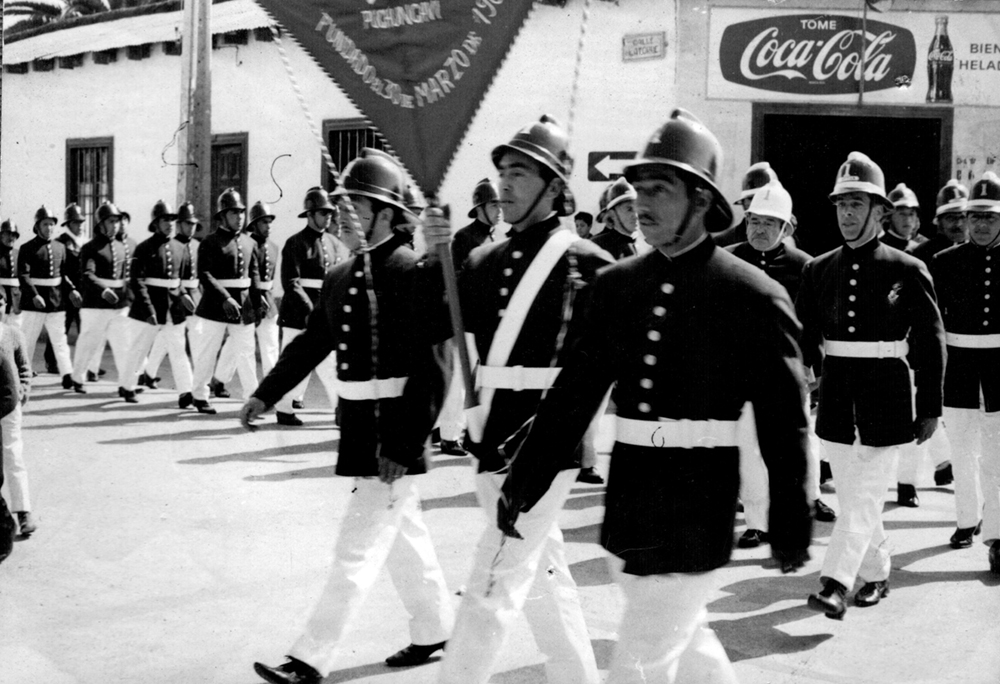 1960-1969PuchuncavíCalle / Bombera / Bomberos de Chile / Desfile / Participación social / Voluntariado