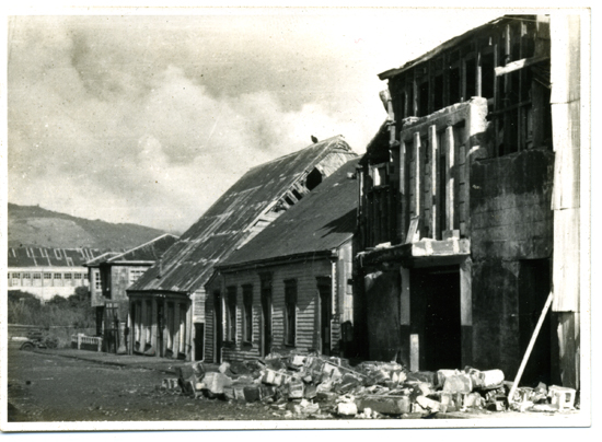 Casa de calle Balmaceda, derrumbada tras el terremoto. La donante recuerda: “había a mucha gente durmiendo en la calle con fogatas. No pudimos volver a la escuela después del terremoto, asistía a la Escuela N°36 de Los Lagos, aunque ese sector no tuvo daños por el Riñihuazo, ni daños graves por el terremoto.
