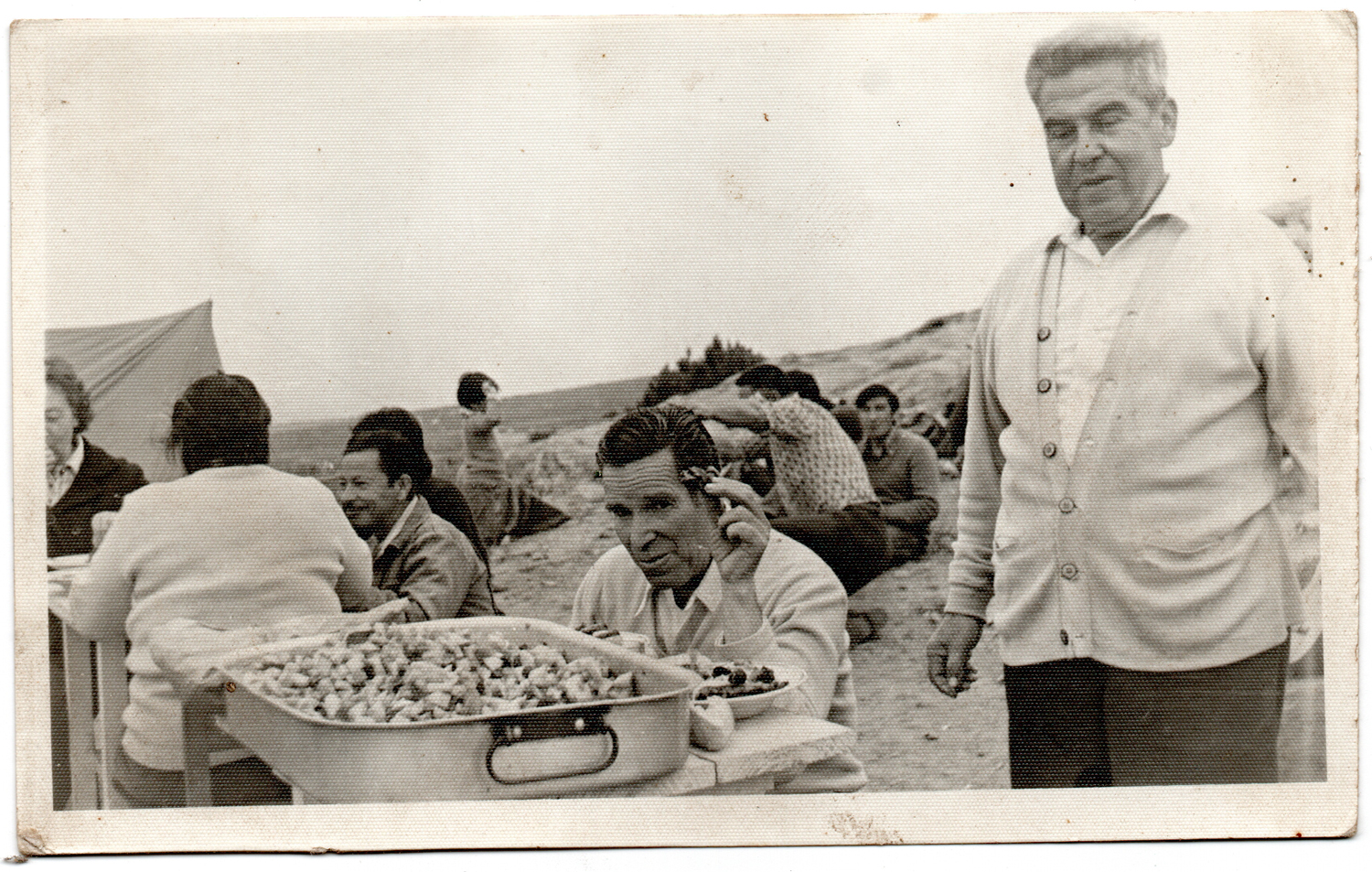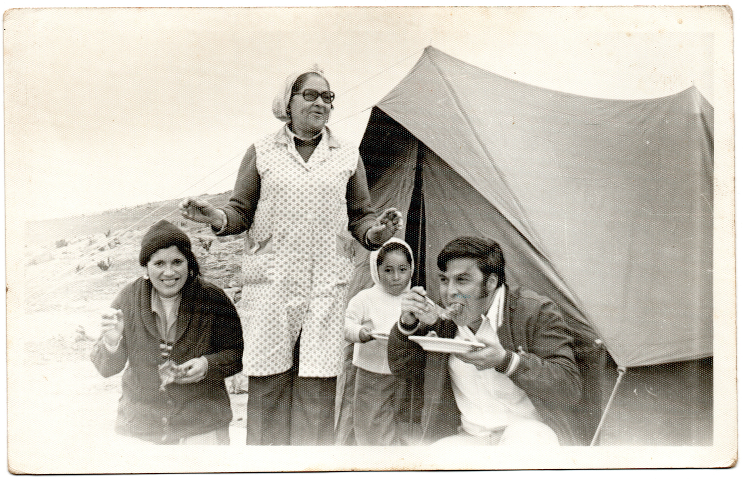 Rubén Darío Muñoz, Teresa Julio, Carmen Zambra, entre otros, disfrutan en familia de la Pampilla. Alexis Halles, el donante de la imagen, relata que era una costumbre de los habitantes de Tongoy celebrar las fiestas patrias en ese lugar, compartir comidas típicas y juegos tradicionales.