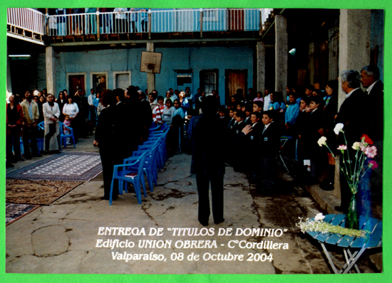 Entrega de títulos de dominios de las viviendas del edificio Unión Obrera, ubicadas en el cerro Cordillera de Valparaíso.