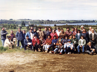 Celebración Santa Elena Personal docente de la Escuela N° 32 E 88 María Teresa del Canto, durante la celebración del Día de Santa Elena. Entre los presentes están, de izquierda a derecha: Ruth Sepúlveda, Miguel Vega, Rigoberto Montenegro, Froilán Estay, Mariela Zamora, Andrés Figari, Rosa Pérez, Aroldo Cantillano, Sonia Sepúlveda, María Opazo y Oscar Gómez. Sentados están: Sylvia Saldivar, Olga Flehans, Elena Sierra (directora), Yolanda Flores, Alioska Arce, Zaida Olguín, y Miriam Vargas.