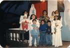 Primera comunión en Iglesia San JoséYanela Guerra Castro, Manuel Estay Castro y Valeska Castro Saavedra junto al tío de catequesis, apodado Pequé. Aparecen al lado de la Virgen de Lourdes dentro de la Iglesia San José.