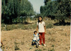 Las hermanas Castro Saavedra paseando en el Estero Santa Rosa. Aparecen Ximena a la edad de 8 años y Valeska a la edad de 2 años andando en triciclo.
