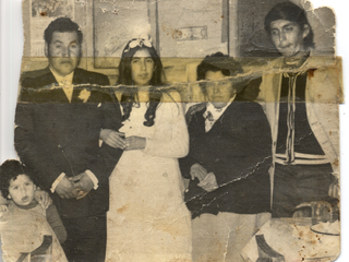 Matrimonio de Dagoberto Reyes y Angélica Silva. Aparecen Hernán Silva Vera y Maritza Silva Peralta a la edad de 6 años. Celebrado en el Club Deportivo Alfredo Riesco.