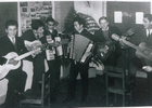 Estudiantes del 5°B durante un recreo. Aparecen Juan Escobar, Guido Monsalve, Guillermo Nova, Francisco Contreras, Guillermo Buttkovich, Víctor Hugo Sandoval. La donante recuerda “Se estilaba en los recreos tocar música y cantar, generalmente latinoamericana como Patricio Manns”.