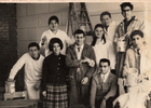 Licenciatura 6° B Escuela NormalLuz Almonacid, María Eugenia Rojas, Yolanda Epuyanca, Sofia Uribe, Eglantina Barrientos, Olga Pérez, Sonia Aros, Rina Ritter, Oclide Yobánolo y Mireya Latorre en el gimnasio de la Escuela Normal, donde se desarrolló la licenciatura de nuevos profesores y profesoras normalistas. La donante comenta “Aparece en la foto el profesor Oñate, quien realizó un discurso en esta jornada”.