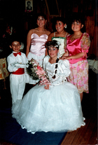Licenciatura de la Escuela 1Ceremonia de licenciatura en la Escuela N° 1 de Temuco, hoy Escuela Trencito. Aparece Lorena Alarcón Lizama. La donante comenta: “Esta es la escuela del sector a la que todos fuimos. Mi hermana lleva el estandarte de la escuela, junto a su compañera Angelica Valdebenito”.