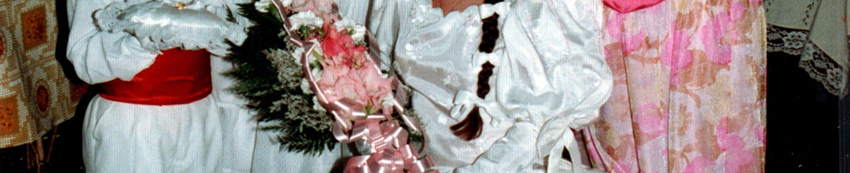 Marly Alarcón junto a sus hermanas Mónica, Lorena y Claudia el día de su matrimonio. La donante comenta: “Mi madre se ganó la vida como costurera y ella me hizo el vestido a mí y al de todas sus hijas. Yo tenía 22 años y era la primera hija en casarse, vino familia de todos lados, fue un matrimonio a lo grande, era en un local de los aviadores retirados en calle Zenteno”.