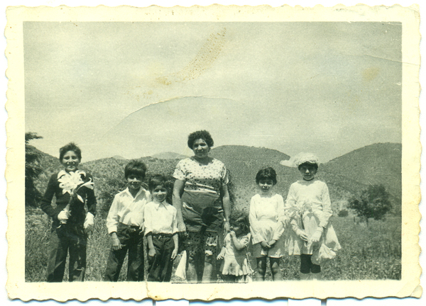 Primera comunión de Domingo Pimentel Rojas y Yolanda Pimentel Rojas. Aparecen Yolanda con sombrero, Susy Pimentel R., Pamela Morales Rojas, Marina Rojas Durán, Luis Rojas Espinoza y Juan Carlos Rojas.