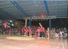 Socios y simpatizantes del equipo alientan a los jugadores. Como todos los años, la Escuela América de Combarbalá recibe a los hinchas de los clubes de basquetbol Unión Juvenil, caracterizados por el color rojo, y Los Loros, representados por el verde.