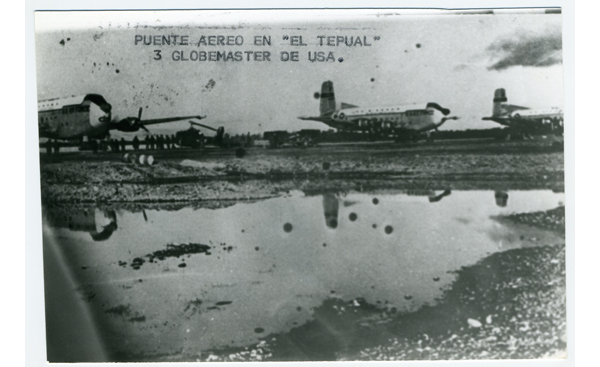 Aviones Globe Master, provenientes de Estados Unidos, en el aeropuerto El Tepual. Las aeronaves contaban con sumnistros para ayudar a los damnificados del terremoto de 1960.