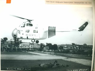 Ubicado en la plaza que queda junto a la costanera, frente al Hotel Don Vicente. Elna Stange cuenta que cuando llegaban los helicópteros la gente se reunía alrededor de la plaza.