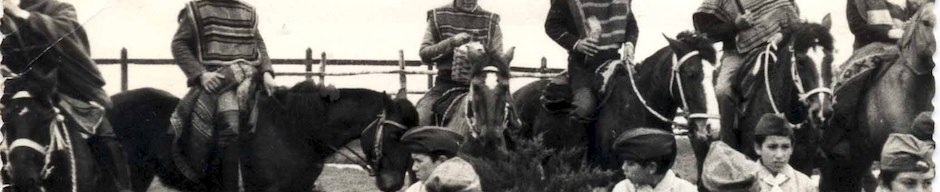 Junto a ellos se encuentran integrantes del Club de Huasos de Quellón. De izquierda a derecha: Antonio Vidal, Felipe Bahamonde, Juan Teca (con la “chuica”de chicha), Pedro “Perico” Mansilla (con el cacho de chicha), Manuel Valle Macías (abanderado y presidente del club) y Osvaldo Haro Bórquez.
