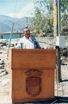 José Lafferte Zepeda da un discurso en la inauguración del puente de acceso a Villa El Palqui.